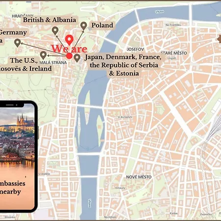 john lennon wall and other places worth exploring were within a walking distance of the hotel. exceptional location; venue has public parking. 200 feet away there is restuarce u kostela, where you can dine. the rooms met all required needs.